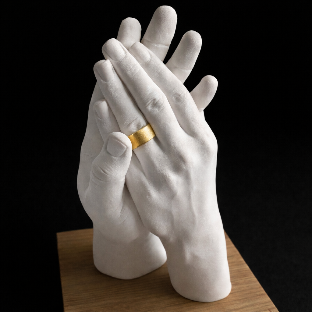 You do not hold hands like a stock photo. You have your own grip, your own pressure, your own tiny habits that say this is us. Hand casting for couples lets you keep the exact way your hands meet, the connection, the story, and the calm underneath it all, finished as a display piece you will actually want to show.